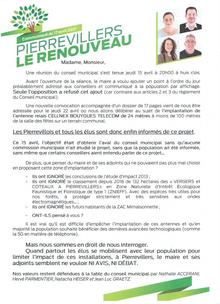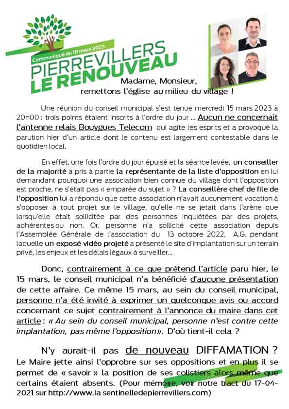 du mandataire de la liste "Pierrevillers, le Renouveau"